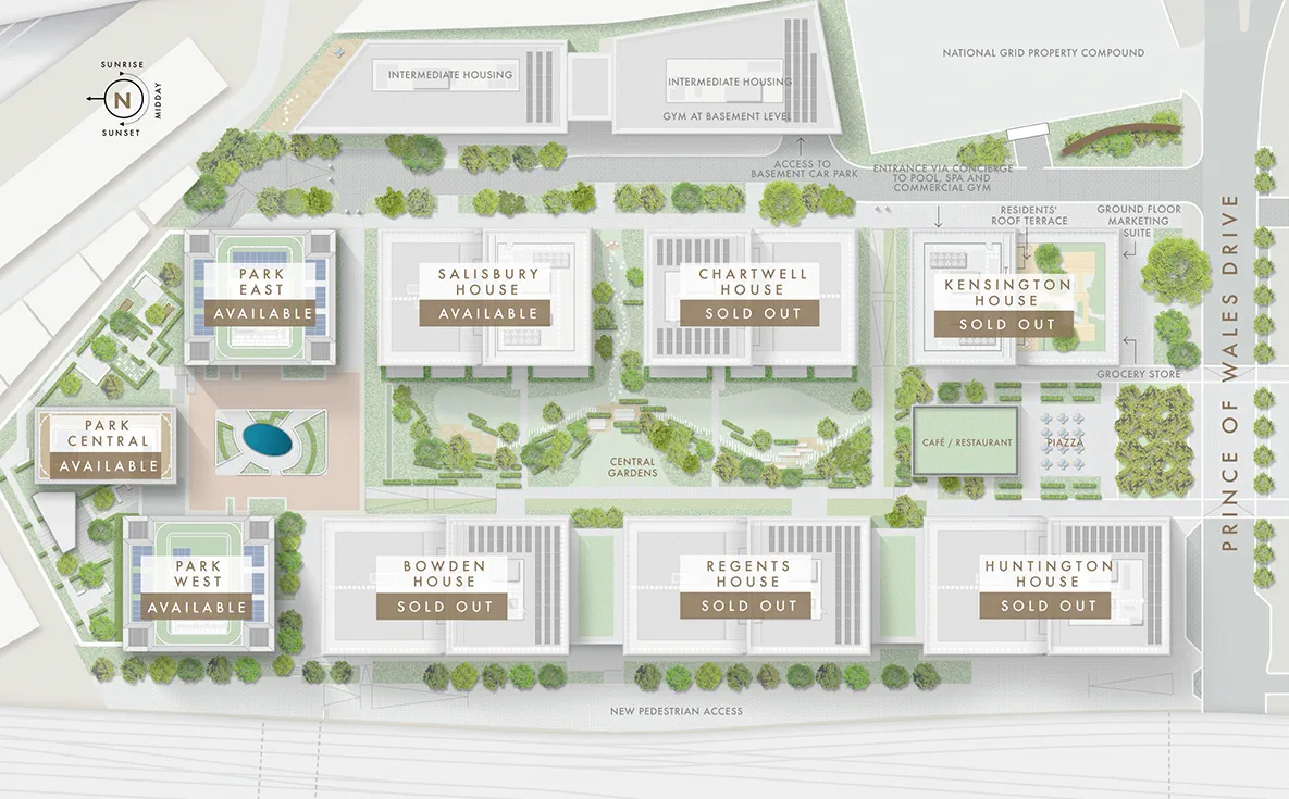 Prince of Wales Drive offers a harmonious blend of four distinct buildings: Kensington House, Huntington House, Chartwell House, and Bowden House. Each building exudes elegance and sophistication, catering to a discerning clientele seeking a refined living experience.