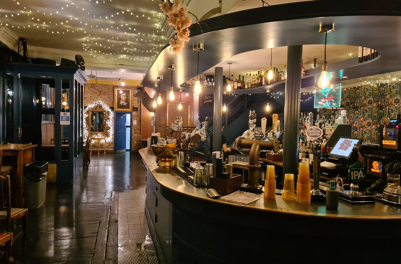 Upon entering The Rose, you are instantly transported to an era of refined elegance. The stunning bespoke circular bar, adorned with gleaming chandeliers, takes center stage, while vintage furniture and intricate design details create a warm and inviting atmosphere. Whether you’re seeking a cozy corner to unwind with a pint or a lively table to gather with friends, The Rose’s interior seamlessly blends old-world charm with modern comfort.