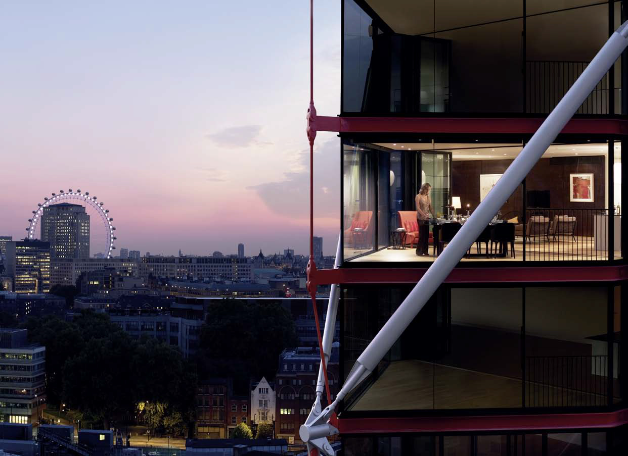For example, the 16th-floor penthouse, designed by Jonathan Reed of Studio Reed, generates comfort and intimacy rarely seen in modern homes. Reed explains that he consciously created an apartment that uses light, texture and colour to create different areas and environments within the open-plan layout. The natural fabrics and soft furnishings are an inviting contrast to the glass and steel structural details. Reed describes the apartment as being: ‘A modern country house in the sky’.